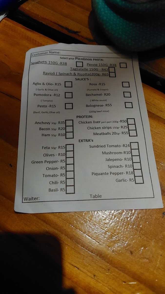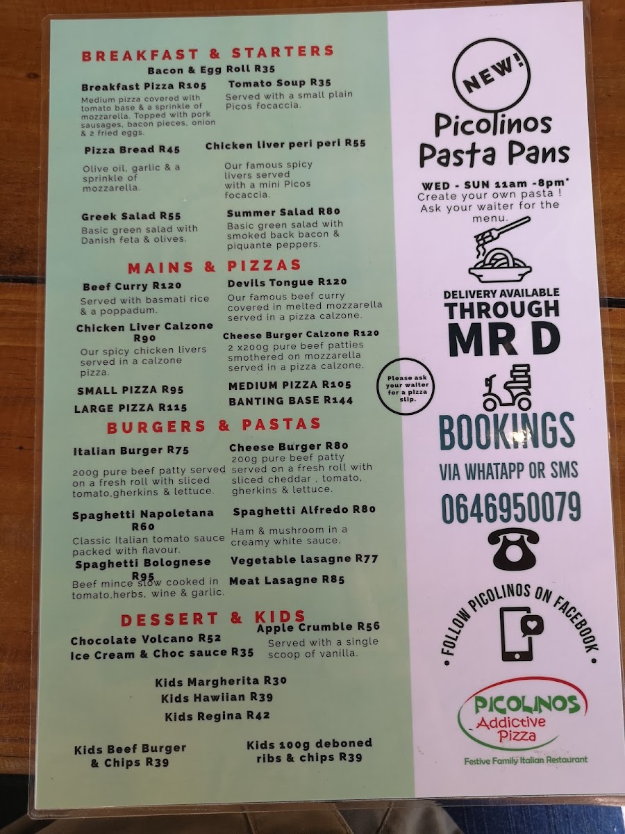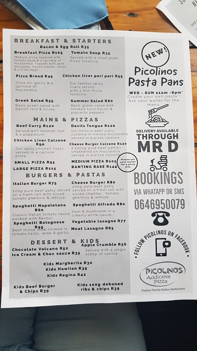 The menu at Picolinos offers a relaxed and approachable selection focused on comforting, hearty dishes perfect for casual dining. From build-your-own pizzas allowing you to tailor toppings exactly how you like, to classic pastas and well-crafted burgers, there’s a satisfying choice for any time of day.